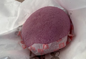 なびんちゅ食感はポンデリングみたいで、中の紅いもと外のホワイトチョコの組み合わせも美味しかった(^^)また買おー★