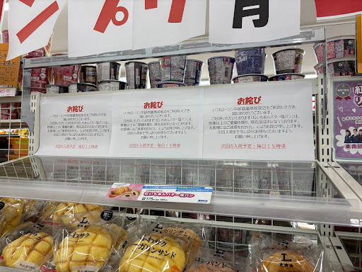 商業高校の近くのコンビニは、2商品売り切れ中でした。